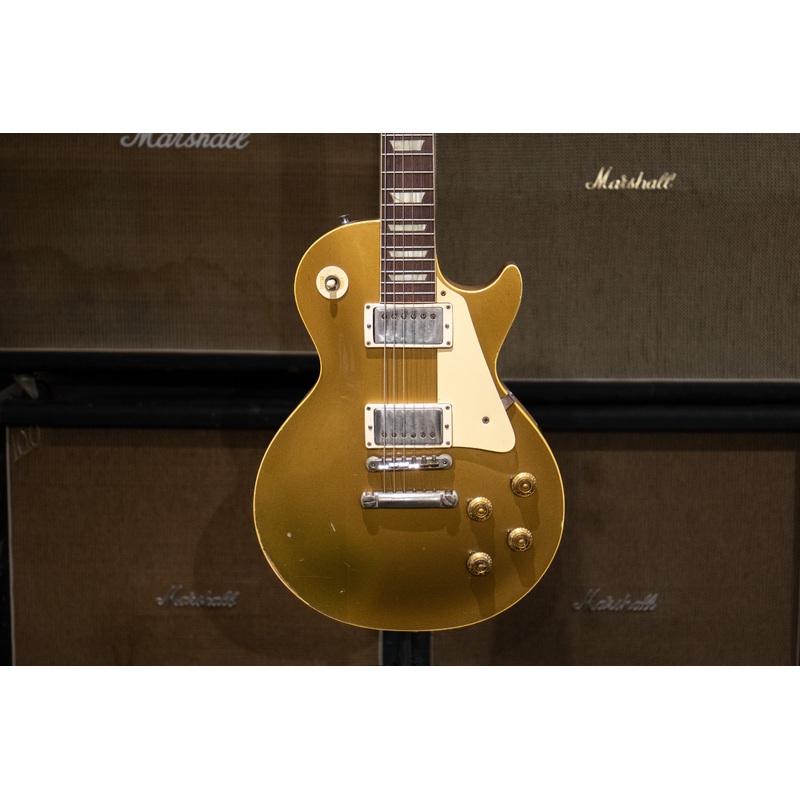 Serial Number 81131 This Les Paul is among the last with the original gold-colored finish (the finish changed to cherry sunburst later that year). This guitar shows all the improvements that were made up until 1958. These include the stop tailpiece (1954),