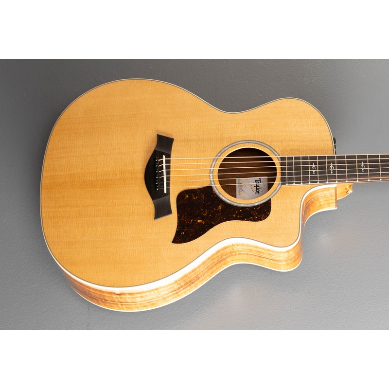 “Players seeking an all-purpose acoustic guitar with striking looks to match its rich tone are sure to love the 214ce-K DLX. This versatile Grand Auditorium boasts back and sides of beautifully figured layered Hawaiian koa paired with a solid torrefied Sitka spruce top, combining for a vibrant yet warm tone with room-filling projection and a clear, balanced profile across the frequency spectrum. Our special roasting recipe for the top adds a dash of warmth and sweetness that you’d expect from an older guitar, while the cantilevered V-Class bracing inside dials up more volume, longer sustain and clearer harmony between notes. This Deluxe model is capped with upgraded appointments like gold hardware, a full-body gloss finish, and Sentinel fretboard inlays.”