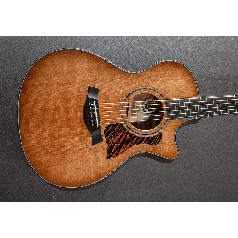 “Sapele, often compared to mahogany because of its look and sound, first joined the Taylor lineup in 1998. Since then, our sapele/spruce 300 Series guitars have welcomed countless players to the all-solid-wood acoustic experience. The limited-edition 50th Anniversary 312ce LTD celebrates and continues that tradition. The cutaway Grand Concert features solid sapele back and sides paired with a torrefied Sitka spruce top. This combination produces a balanced, resonant tone with clarity, warmth and responsiveness. Our special roasting process slightly darkens the soundboard and adds touches of aged-in sweetness and depth from the first time the guitar is played. V-Class voicing architecture inside improves pitch accuracy up and down the neck while boosting volume and sustain. Its slim neck and low action ensure familiar Taylor playability. A shorter, finger-friendly scale length makes fretting easier and reduces string tension, making for an even more inviting playing experience. Gemstone inlays, a bold firestripe pickguard, a shaded edgeburst and gloss-finished body add distinctive visual appeal. Other 50th Anniversary touches include a commemorative label inside, gold Taylor tuners and ebony bridge pins with gold acrylic dots. The guitar comes equipped with an onboard ES2 pickup and ships in a Deluxe Hardshell Case.”