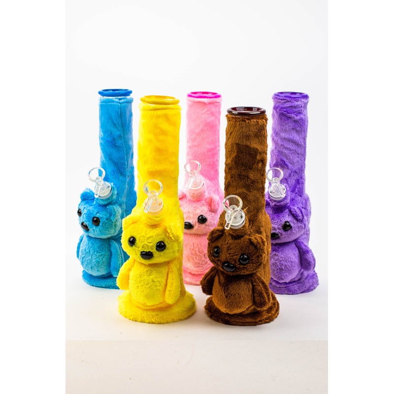 Sweeten up your day with this cute bear cover & bong! Makes for a charming and fuzzy smoking companion. The Bear Bong stands tall at 11 inches high. Quality Borosilicate Glass Cute bear cover Height : 11" Thickness : 5 mm Base : 5.5" Tube Diameter: 2 " 3 p