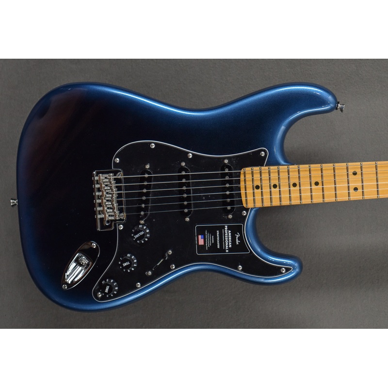The American Professional II Stratocaster draws from more than sixty years of innovation, inspiration and evolution to meet the demands of todays working player. Our popular Deep C neck now sports smooth rolled fingerboard edges, a Super-Natural satin finish and a newly sculpted neck heel for a supremely comfortable feel and easy access to the upper register. New V-Mod II Stratocaster single-coil pickups are more articulate than ever while retaining bell-like chime and warmth. An upgraded 2-point tremolo with a cold-rolled steel block increases sustain, clarity and high-end sparkle. The American Pro II Stratocaster delivers instant familiarity and sonic versatility youll feel and hear right away, with broad ranging improvements that add up to nothing less than a new standard for professional instruments.