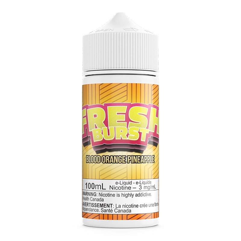BLOOD ORANGE PINEAPPLE - FRESH BURST 100ML A Juicy Blood Orange base that's perfectly combined with Fresh Pineapple 100ml Bottle 70VG / 30PG