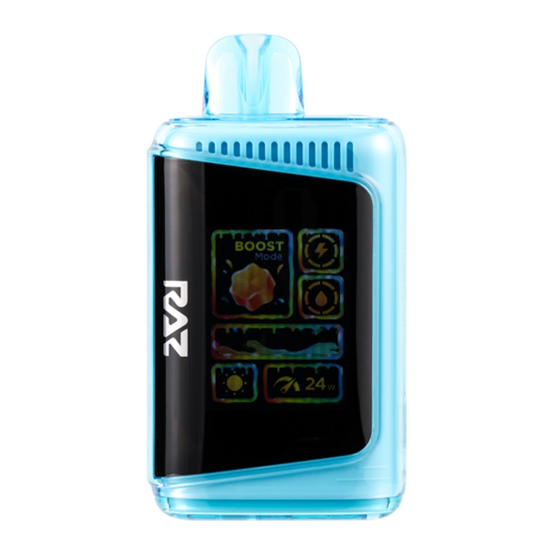 RAZ LTX 25K DISPOSABLE VAPE (RAZ DC25000) Flavor: Its a gusher of nostalgic candied fruit flavor, juicy and alluring, that makes the Gusher Edition Blue Raz RAZ LTX 25000 such a delightful and alluring vape. E-liquid contents: 16ml Nicotine Strength: 50mg