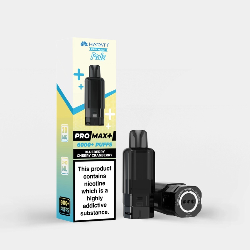Hayati Pro Max+ Pods Find Your Flavour Fix! Got a Hayati Pro Max+ device? Perfect. Explore 30 bold flavours and enjoy smooth, flavour-packed clouds with every puff. Blueberry Cherry Cranberry Rich blueberries and cherries lifted by cranberry tang for a ful