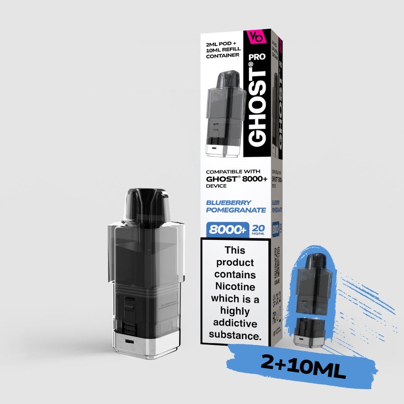 Ghost Pro 8K Blueberry Pomegranate Pods combines the sweet taste of blueberries with the tartness of pomegranate, resulting in a perfectly balanced and fruity. Each pack includes a 2ml pod + 10ml refill built to keep the taste going strong.