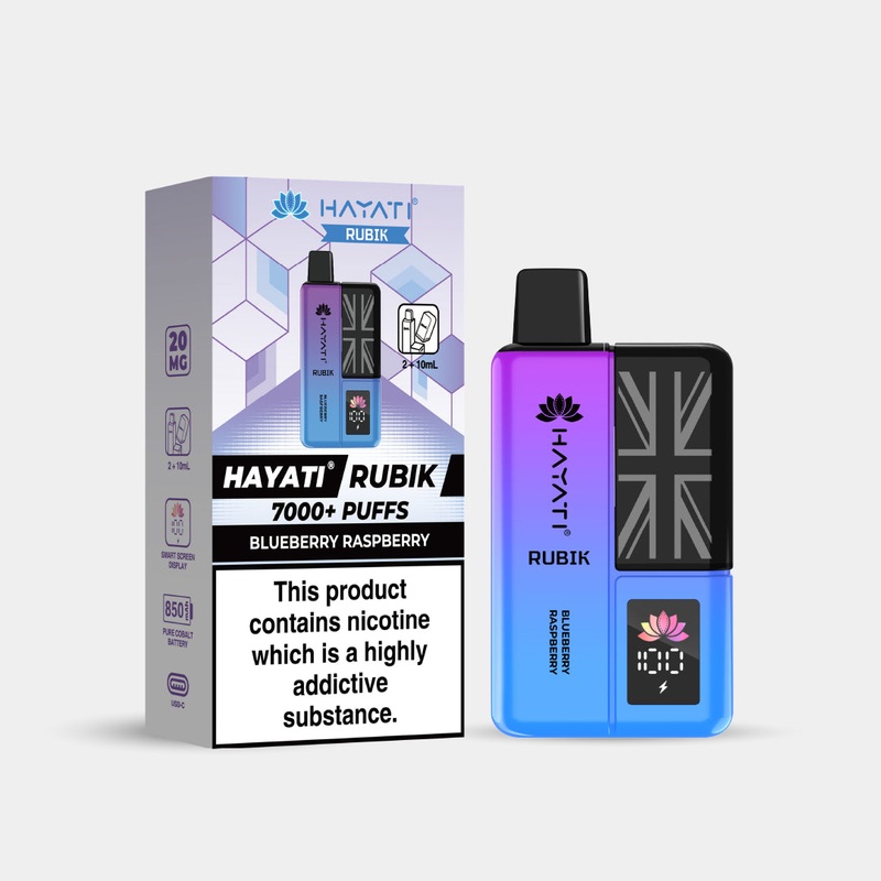 Hayati Rubik Blueberry Raspberry offers a Sweet and tangy, this mix of blueberries and raspberries is perfectly balanced. Offering up to 7000+ puffs with smoother airflow and long-lasting flavour, it features an improved e-liquid delivery system with doubl