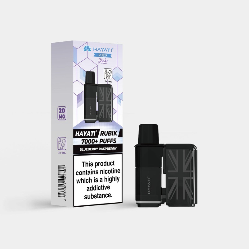 Hayati Rubik Pods Blueberry Raspberry Got your Hayati Rubik device? Great. Now unlock 20 bold flavours and experience flavourful clouds with each puff.Blueberry Raspberry: Sweet and tangy, this mix of blueberries and raspberries is perfectly balanced.