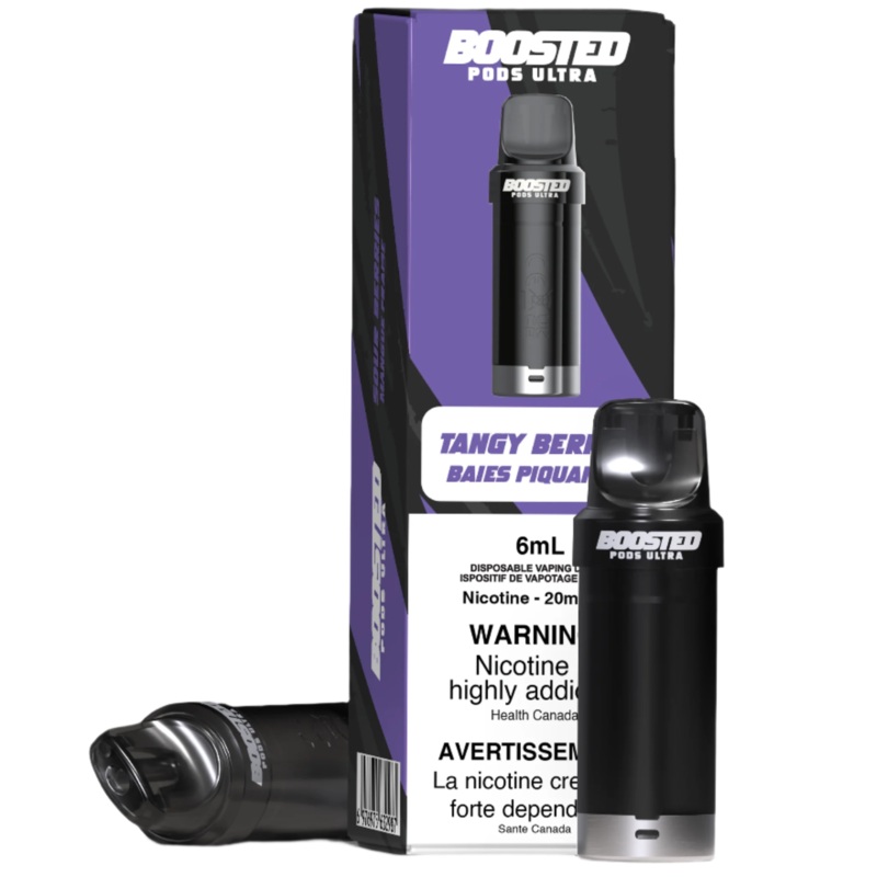 TheBoosted ULTRA Pods - Tangy Berries - Delight in a burst of mixed tangy berries that deliver a perfect balance of sweetness and tartness in every vape. Boosted Pods ULTRA Key Features: New Design with Leak proof technology Classic Boosted Nicotine OLED S
