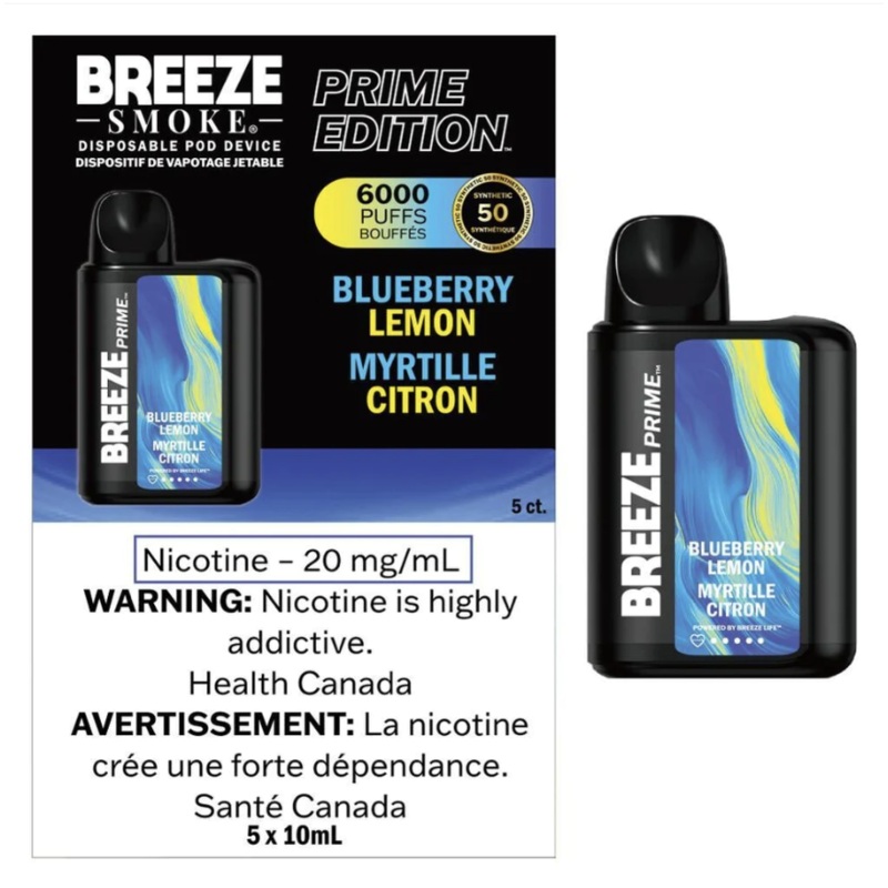 TheBreeze Prime Edition Blueberry Lemon- A delightful burst of tart lemon meets the sweet undertones of blueberry. It's a fusion that reminds you of sun-kissed orchards and cool summer breezes. Features: 10 ml of pre-filled Ejuice 6000 puffs 1500mAh Intern