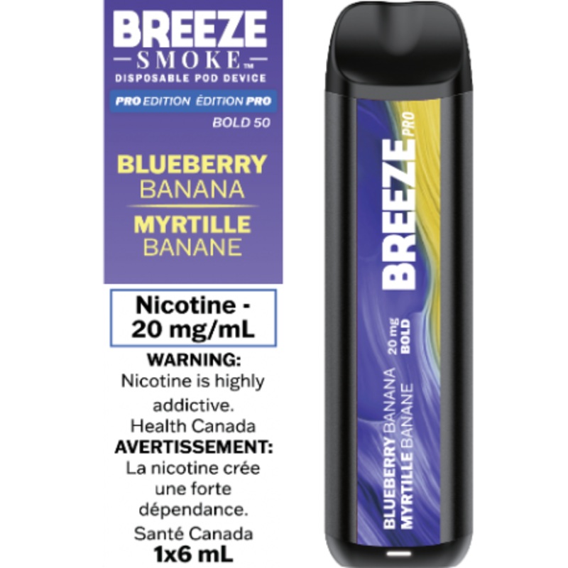TheBreeze Pro - Blueberry Banana - Blueberries soaked in banana cream will satisfy you like no other. Features: Draw Activated Inhale (LED) Non-Refillable, Fully Disposable Premium Mesh Coils Specifications: 6ml of Pre-Filled Ejuice 2000 Puffs Battery 1000