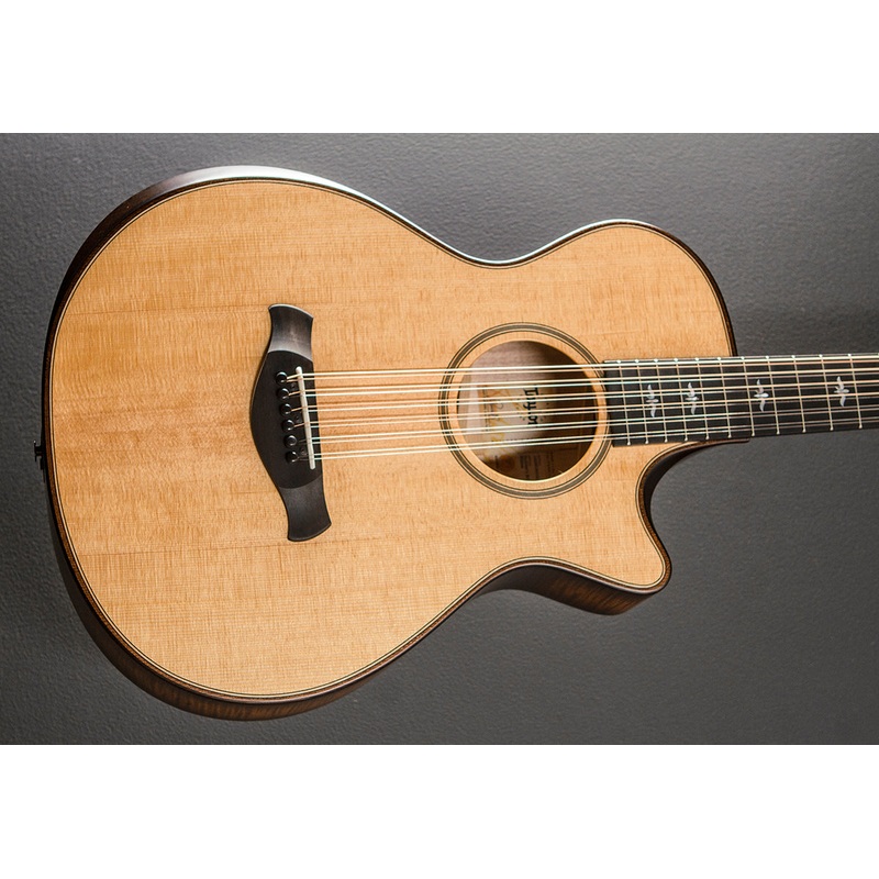 “The first 12-string entry in our Builder’s Edition family of guitars, the Builder’s Edition 652ce sports Big Leaf maple back and sides that deliver a focused, player-reflective sound that showcases your individual technique. Torrefied Sitka spruce for the top brings an aged-in warmth and sweetness with V-Class bracing to dial up the volume and sustain. The reverse-strung setup (with the heavier string of each pair on top) generates more tonal heft in this Grand Concert’s rich octave shimmer, and other Builder’s Edition features include a beveled armrest and cutaway, chamfered body edges, a Silent Satin finish and a smooth Curve Wing bridge. The Builder’s Edition 652ce ships with ES2 electronics and a deluxe hardshell case.”