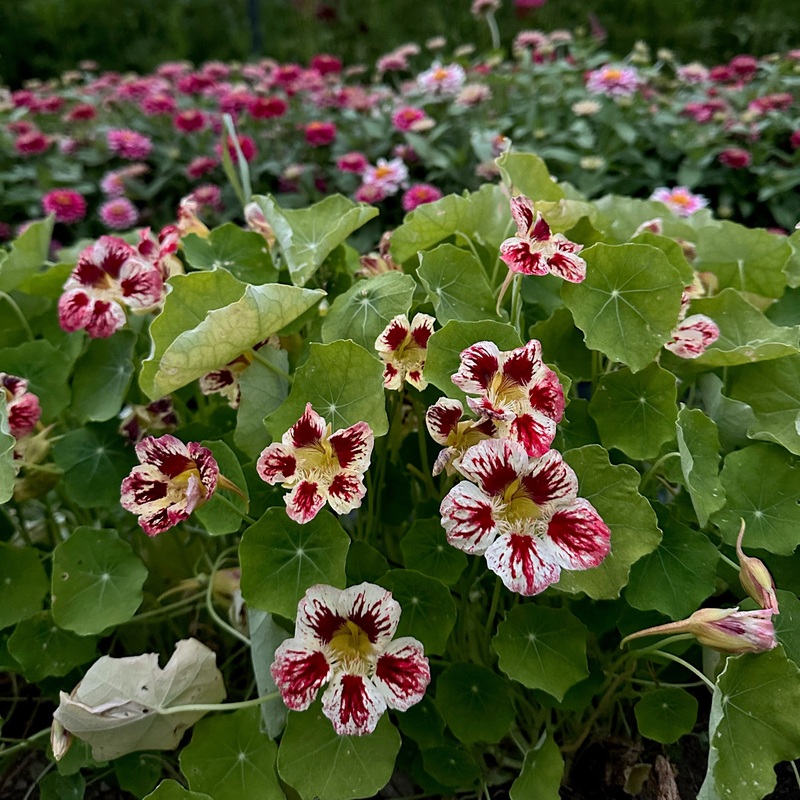 Tropaeolum minus Ses fleurs aux nuances crme et cerise offrent une beaut dlicate et une touche subtilement pice. Non seulement elle orne le jardin de sa couleur vibrante, mais ses feuilles et fleurs comestibles ajoutent une saveur unique et releve aux sala