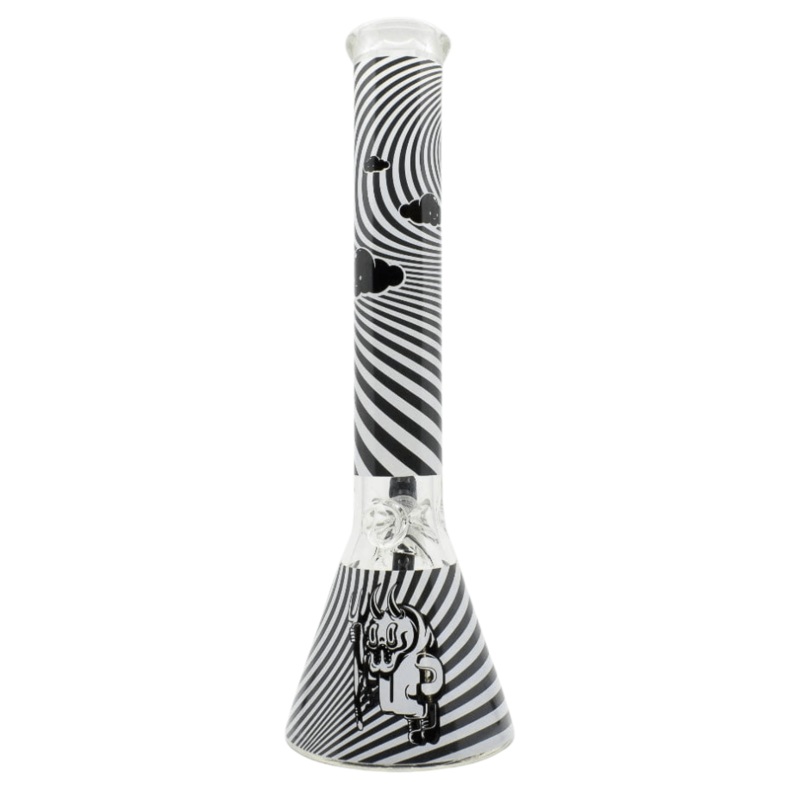 Castle Glassworks 7mm Demon Beaker Bong STANDING 16" TALL with a very thick 10mm base to give you max stability. Castle includes a matching colored glass downstem and bowl with their bong. Castle Glassorks is proudly Canadian Glass blower designing beautif