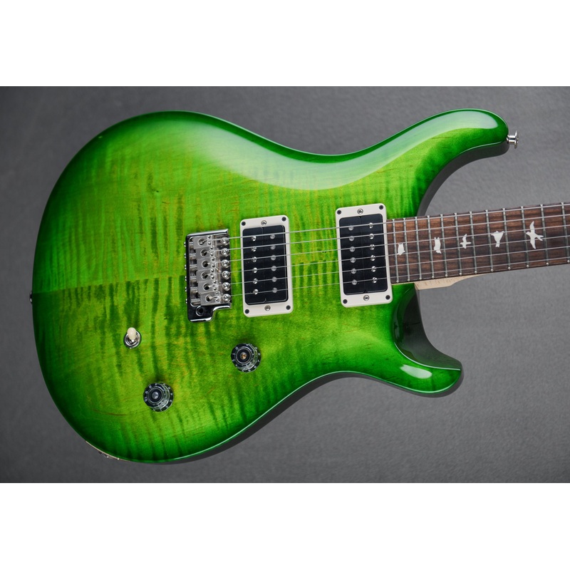 Very Good Condition, Eriza Verde, Violin carved figured Maple top, Mahogany body, Pattern Thin carved Mahogany neck, 10" radius Rosewood fingerboard with the Bird inlays, 25" scale length, 1 11/16th nut width, PRS 85/15 bridge and neck pickups, 3-way toggl