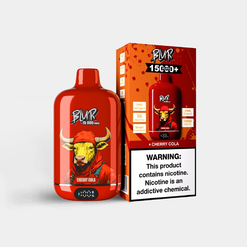 NOT FOR SALE IN UK & EUROPEBlur 15,000 Disposable VapeCherry Cola: A classic cola flavour infused with cherry notes.Up to 15,000 puffs, Rechargeable Battery, Available In 20 Different flavours.