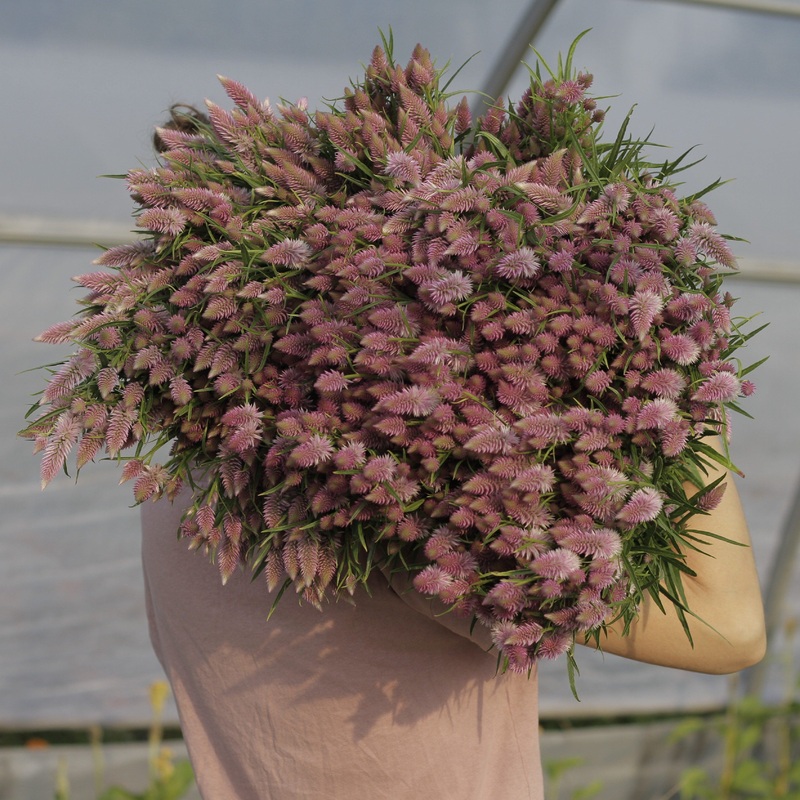 Celosia argentea spicata Cette varit de closie est particulirement facile cultiver et rcolter. Les plants produisentprofusion de hautes tiges droites et robustes avec peu de feuilles enlever.Les hampes florales s'ouvrent de bas en haut et plissent avec le