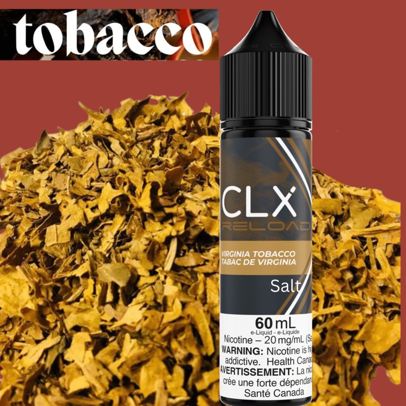 Shop CLX Reload 60ml Salt Virginia Tobacco flavor is a premium tobacco juice that has a particularly sweet taste most commonly found in light cigarettes. For those vapers that still love the taste of a good tobacco, this flavour is perfect for you. CLX Rel