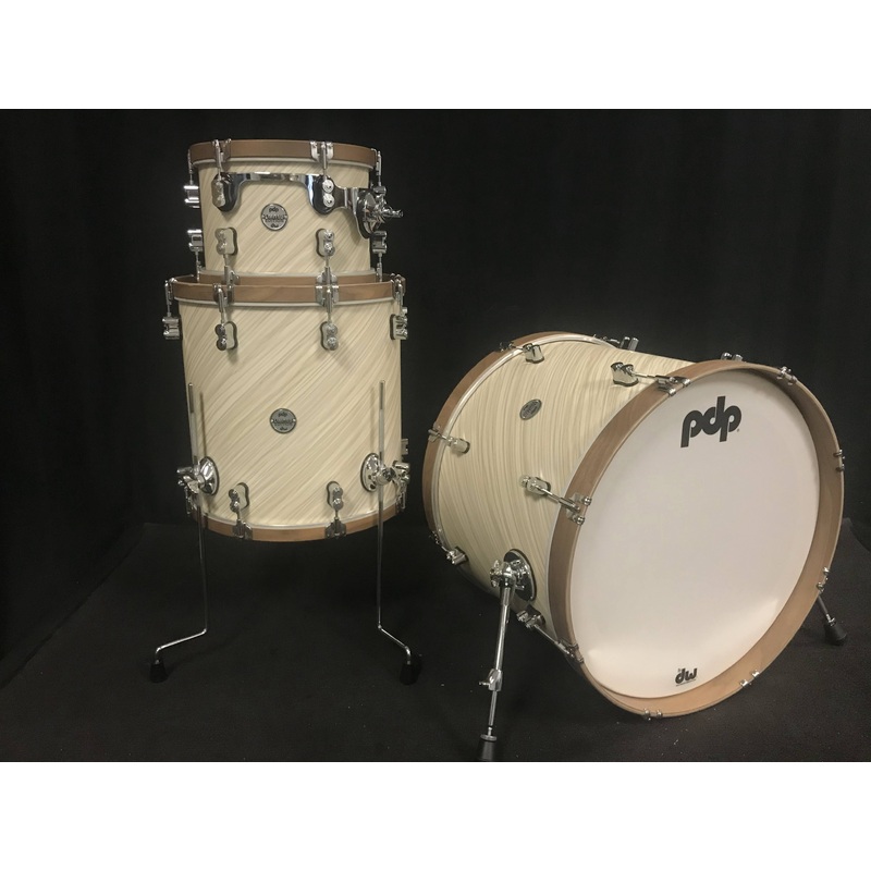 PDP Concept Maple Classic 3 Piece Shell Pack Twisted Ivory Wrap with Walnut Stain Hoops All-Maple Shells and Hoops 16"x22" Bass Drum 16"x16" Floor Tom 8"x12" Rack Tom Remo Heads TruePitch Tension Rods Daves Drum Depot Photos are of the actual drum set. We