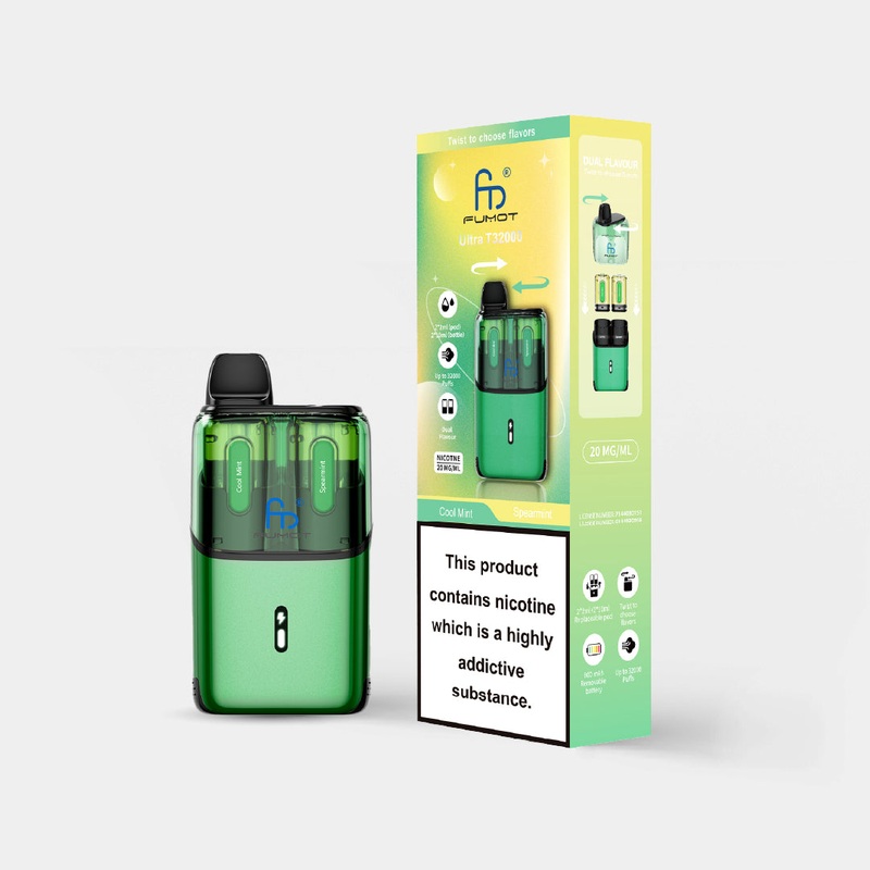 Fumot Ultra T32000 Cool Mint | Spearmint Get over 32,000 puffs with bold, smooth flavour in every hit. Rechargeable and available in 16 tasty flavours to keep you going. Cool Mint Crisp, refreshing mint thats cool and invigorating.Spearmint Classic spearmi