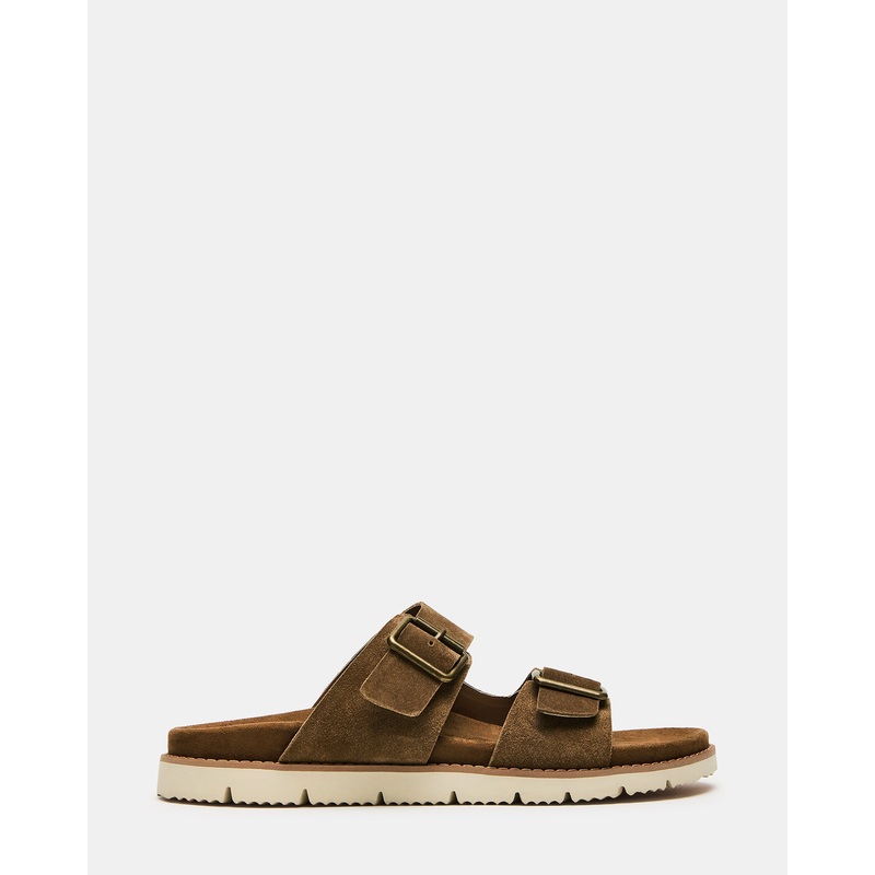 Crafted from high-quality suede, the CORBAN slide sandals offer both comfort and style. The slip-on construction and double buckle closure ensure a secure fit, making them perfect for everyday wear. Elevate your shoe game with these versatile and stylish s