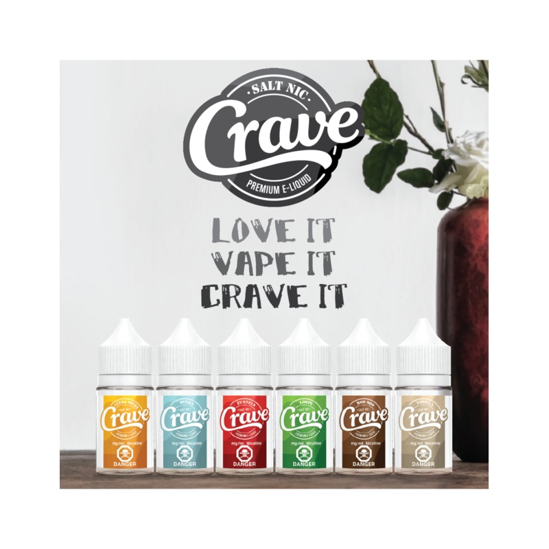 Crave Salt E-liquid 30mL|Vanilla|Moo Moo|Hazel|Strawberry|Crunch|Loopy|Lemon vibe|Cinna|Hoops|20mg|12mg