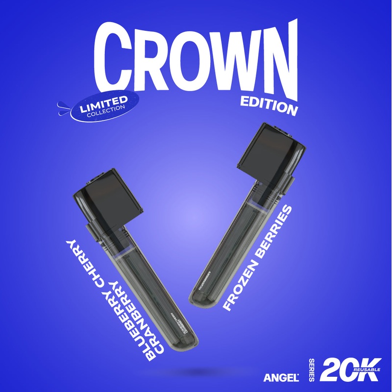 Angel 20K Limited Edition Pods Crown Edition your perfect flavour duo! Got an Angel 20K? You're all set. This 2-pack is made for mixing and matching, with bold flavour combinations designed for the summer season. Taste summer with every puff.Blueberry Cher
