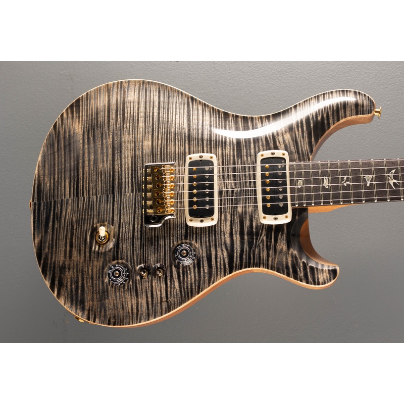 Charcoal, High gloss nitro finish, Violin carved Flame Maple 10 top, Mahogany body, Pattern Thin carved Mahogany neck, 10″ radius Rosewood fingerboard with the Bird inlays, 25″ scale length, 1 11/16th” nut width, PRS TCI bridge and neck pickups, 3-way toggle switching with the volume and tone controls plus the two mini-toggle coil tap switches, PRS Gen III tremolo, PRS Phase III locking tuners with the wing buttons, 7.7 pounds, With hardshell case