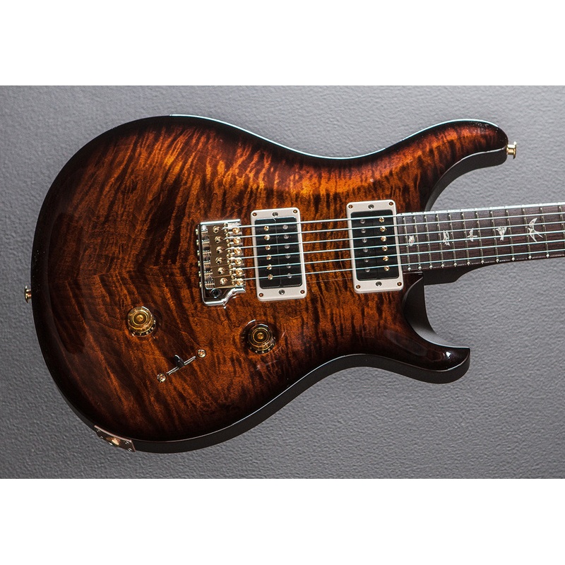 “The Custom 24 is the quintessential PRS guitar. This iconic instrument was the first model that Paul Reed Smith brought to the public at PRS Guitars first Winter NAMM show in 1985 and has been a top seller ever since. Played by internationally touring artists, gigging musicians, and aspiring players, the Custom 24 features PRSs patented Gen III tremolo system and PRS 85/15 pickups with volume and tone controls and a 5-way blade switch. 85/15 pickups were personally designed by Paul Reed Smith to offer remarkable clarity and extended high and low end. The Custom 24 is the original PRS. Since its introduction, it has offered a unique tonal option for serious players and defined PRS tone and playability.”
