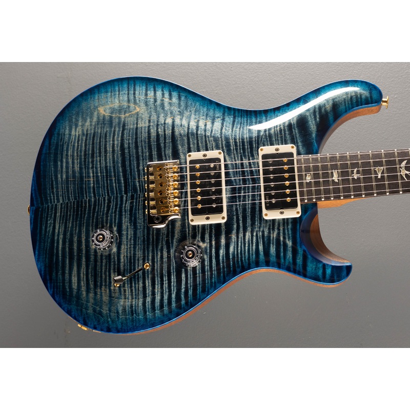 Faded Whale Blue Wrap Burst/Natural back, High gloss nitro finish,Violin carved Flame Maple 10 top, Mahogany body, Pattern Thin carved Mahogany neck, 10 radius Rosewood fingerboard with the Bird inlays, 25 scale length, 1 11/16th nut width, 85/15 bridge and neck pickups plus the PRS/L.R. 5-way blade switching with the volume and tone controls PRS patented Gen III tremolo, PRS Phase III locking tuners with the wing buttons, 7.3 pounds, With hardshell case