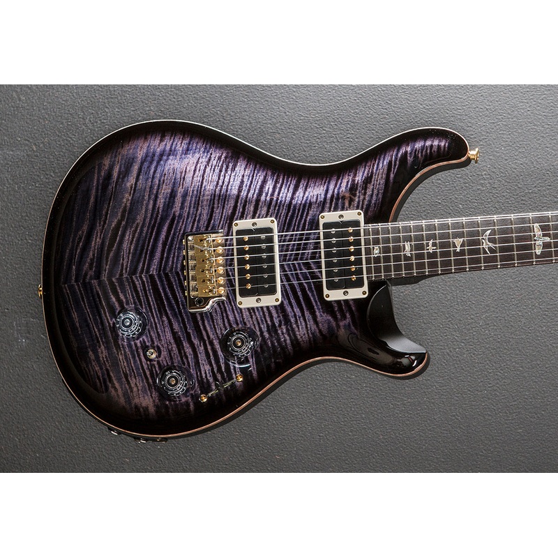 Purple Mist, High gloss nitro finish,Violin carved Flame Maple 10 top, Mahogany body, Pattern Thin carved Mahogany neck, 10 radius Rosewood fingerboard with the Bird inlays, 25 scale length, 1 11/16th nut width, 85/15 bridge and neck pickups plus the PRS/L.R. Baggs piezo system, 5-way blade switching with the volume and tone controls plus a 3-way selector and blend knob for the piezo system, PRS patented Gen III piezo tremolo, PRS Phase III locking tuners with the wing buttons, 8.0pounds, With hardshell case