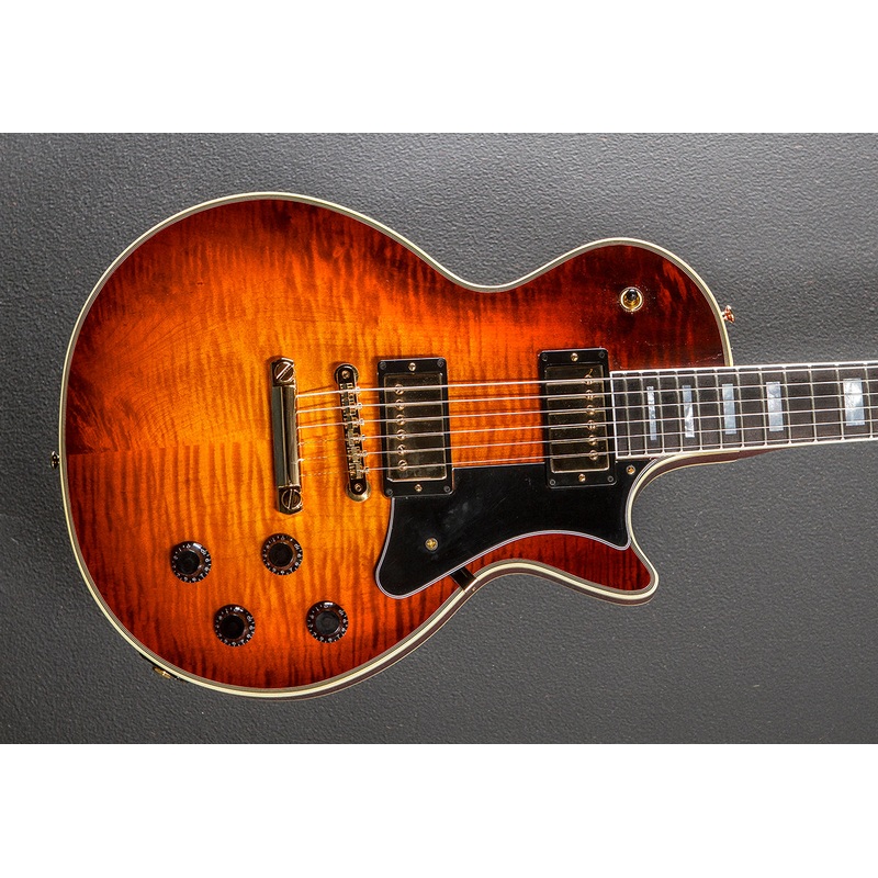 Dark Cherry Sunburst, Vintage gloss nitrocellulose lacquer finish, Premium Curly Maple top on a Mahogany body, Multi-ply top and back binding, 50s C shaped Mahogany neck, Bound 12 radius Ebony fingerboard with the block inlays and medium jumbo frets, 24.75 scale length, 1 11/16th nut width, Heritage Custom Shop 225 Hot Classic humbucking bridge and neck pickups, 3-way toggle switching with the volume and tone controls for each pickup, Tune-o-matic bridge and aluminum stop tailpiece, Heritage cast/sealed tuners, 8.8 pounds, With hardshell case