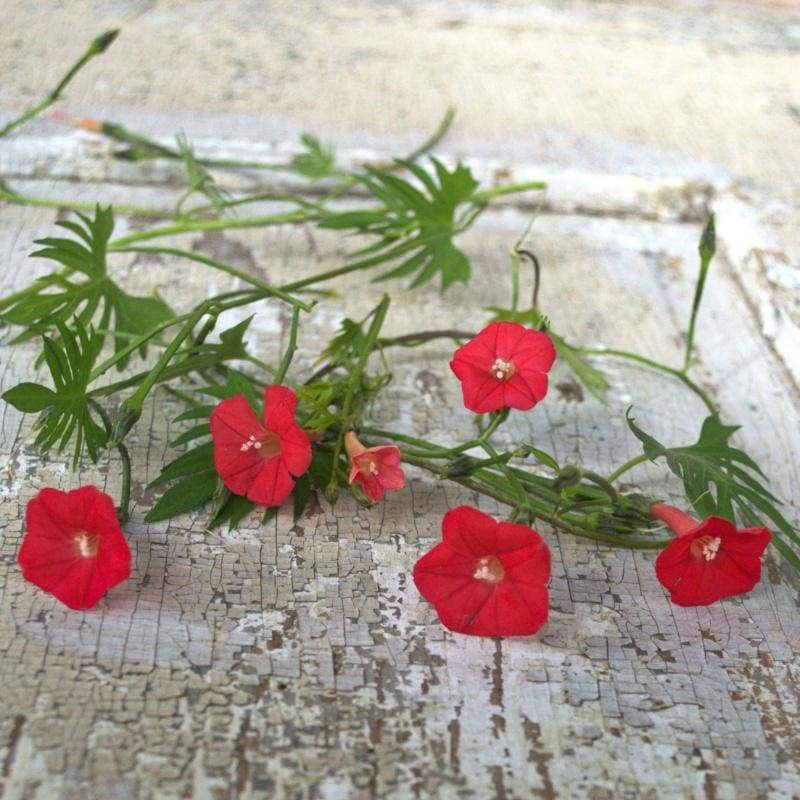 Can grow to 20', with flowers that are 1 1/2" long, funnel-shaped, and vivid scarlet. Leaves are palmate with 7-15 lobes. A dense and robust climber loved by hummingbirds and butterflies. 30 seeds PLANTING Ipomea quamoclit cardinalis. Annual Germination: 7