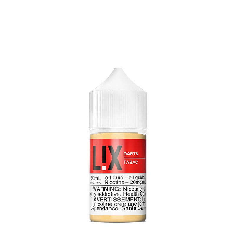 DARTS SALTS 30ML BY LIX A full bodied tobacco. PG/VG Ratio: 40/60 MSRP: 20$ (Plus applicable Excise Duty)