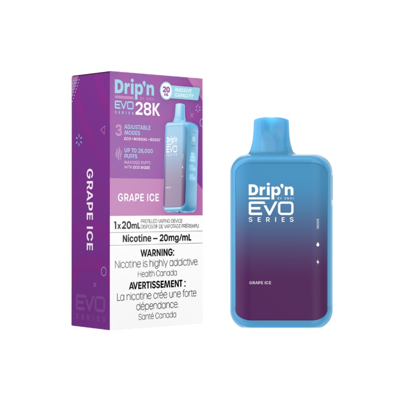 UMA-7956-EWQIDripin Evo 28k bouffes Raisin Glac Wattage rglable Vape jetable rechargeable 20Mg