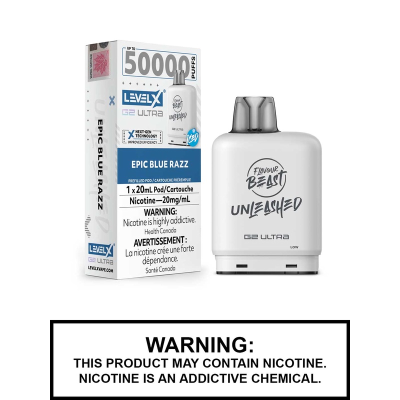 Push the limits of hybrid performance with the Epic Blue Razz Iced Flavour Beast Unleashed Level X Ultra Pods – a next-level upgrade in the Level X vape family. Engineered for extended use, each Ultra pod delivers up to 50,000 puffs with a 20mL vape juice capacity, offering serious longevity and bold flavour in every draw.