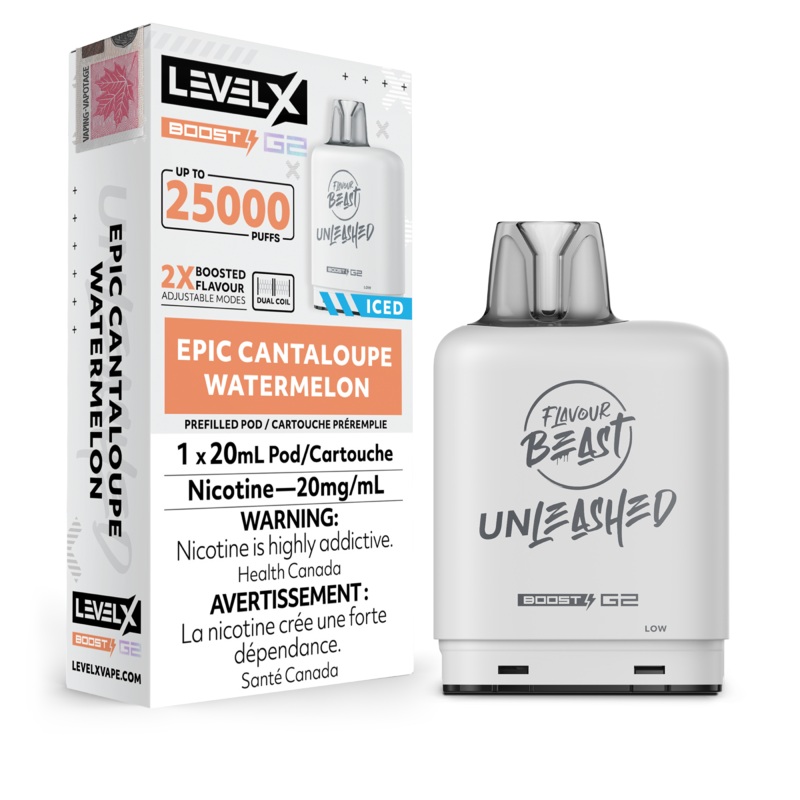Epic Cantaloupe Watermelon Ice by Level X Flavour Beast Unleashed Boost G2 – Closed Pod System (25K Puff) [ON]
