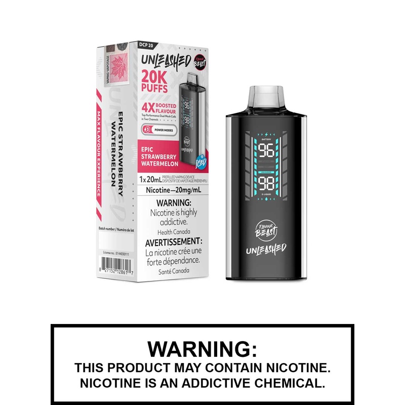 Introducing the Epic Strawberry Watermelon Iced Flavour Beast Unleashed DCP 20 disposable vape, the latest Flavour Beast vape! With a generous 20mL vape juice capacity and three distinct firing modes, the DCP 20 vape is tailored to suit your individual vap