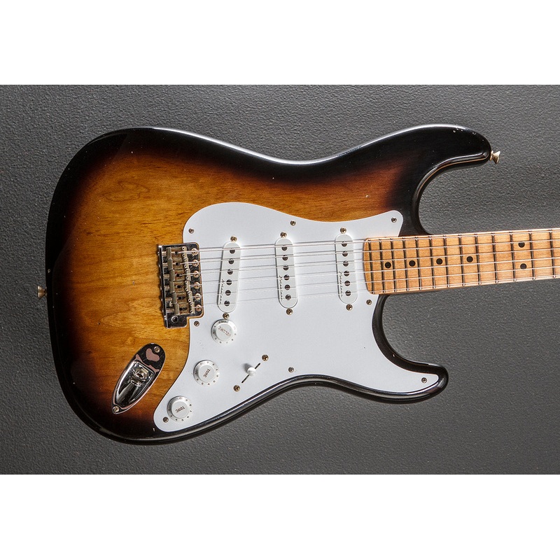 “Mirroring Eric Clapton’s personal specs, the original Eric Clapton Signature model born in the Fender Custom Shop just got cooler with a new Journeyman Relic finish. The new finish lets the two-piece select ash’s figure show through while feeling like it’s seen countless gigs. Offering a special soft V-shaped maple neck, three Vintage Noiseless pickups, blocked tremolo and Clapton’s signature on the headstockalong with the smooth feel and authentic sound of the originalthe Journeyman Relic Eric Clapton Signature Stratocaster is one of our finest creations.”