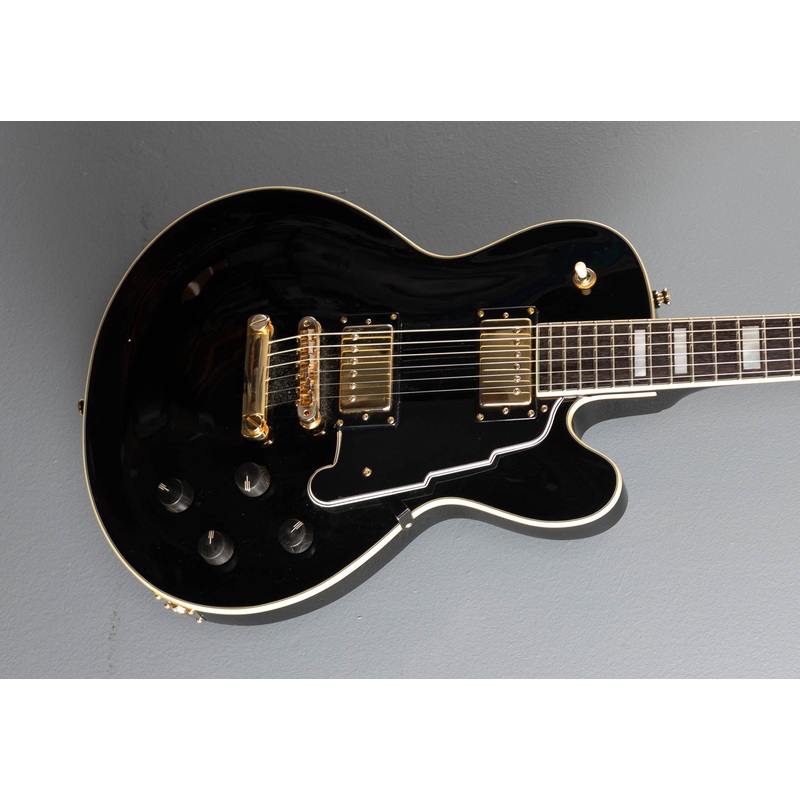 Very Good Condition, Black, Maple top on a Chambered Mahogany body, Bound 14" radius Rosewood fingerboard with Mother of Pearl Block inlays on a Mahogany neck, 1 11/16" nut width, 24.75" scale length, Kent Armstrong bridge and neck pickups, Tune-o-matic br