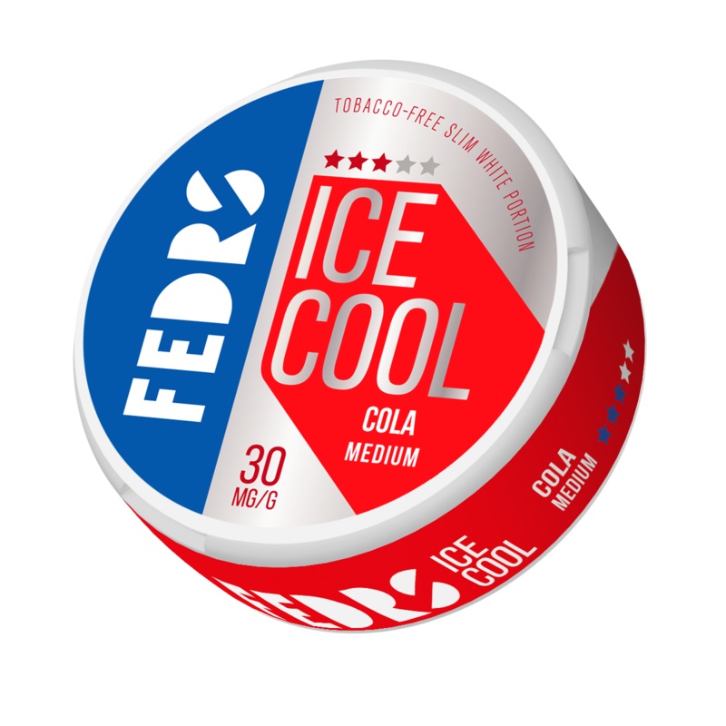 Fedrs Ice Cool Cola Medium Fedrs Cola Medium keeps the fizzy, caramel-rich cola flavor you expect but adds a bigger hit. With 30mg/g nicotine strength, this version gives you the same smooth soda taste, but the buzz is heavier and comes on quicker. The fin