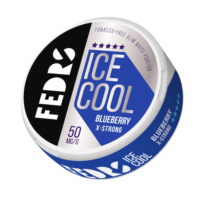 Fedrs Ice Cool Blueberry XStrong Fedrs Blueberry XStrong drops in with clean, natural blueberry flavornot too sweet, not too tartand then turns up the heat with 50mg/g of nicotine. The result is a pouch that feels smooth at first, but builds fast. Its dry,