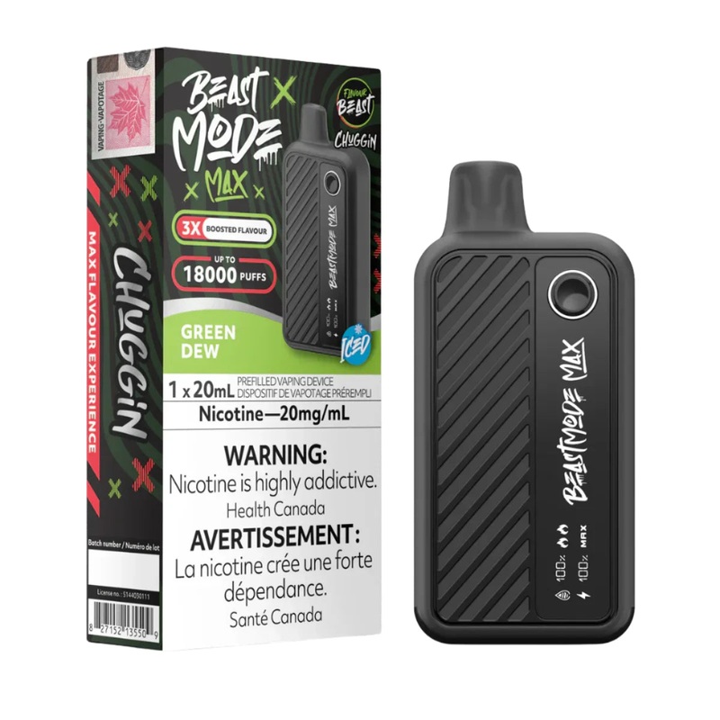 The Flavour Beast Beast Mode Max 18K – Chuggin’ Green Dew – Energize your senses with a zesty explosion oftangy citrus and crisp green flavours,