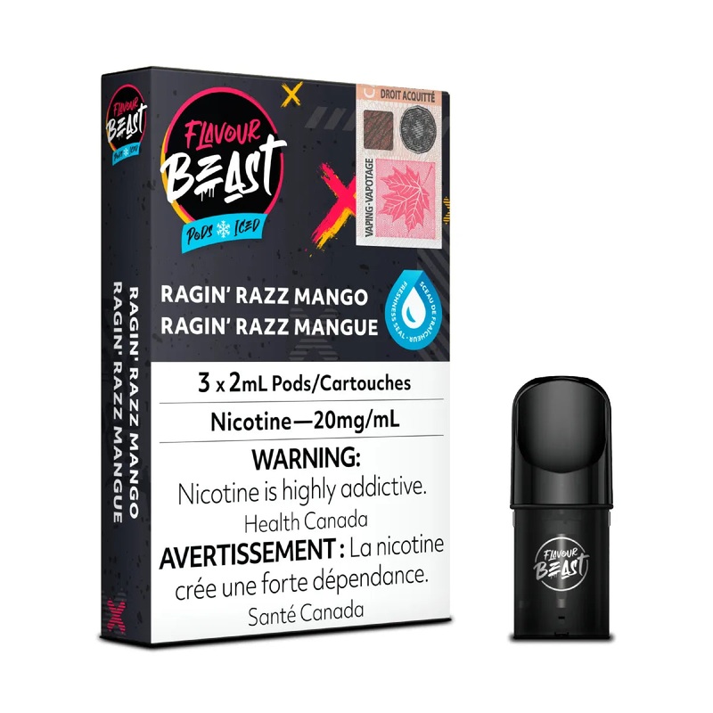 Ragin’ Razz Mango from Flavour Beast Pods is a wild ride of flavours, where the boldness of raspberries clashes with the exotic sweetness of mangoes. This pod is all about unleashing a flavour frenzy that’s both intense and exhilarating. The tartness of the raspberries perfectly complements the lush, tropical notes of mango, creating a ragin’ blend that’s as unpredictable as it is delicious.