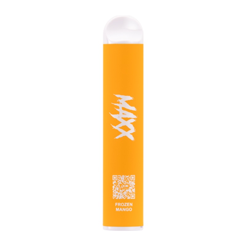 LOON MAXX DISPOSABLE VAPE Flavor: The Frozen Mango LOON Maxxis tropical mango and menthol ice vape flavor. It is delivered in a compact device that requires no charging and delivers a pure vaping experience. E-liquid contents: 6.5ml Nicotine Strength: 50mg