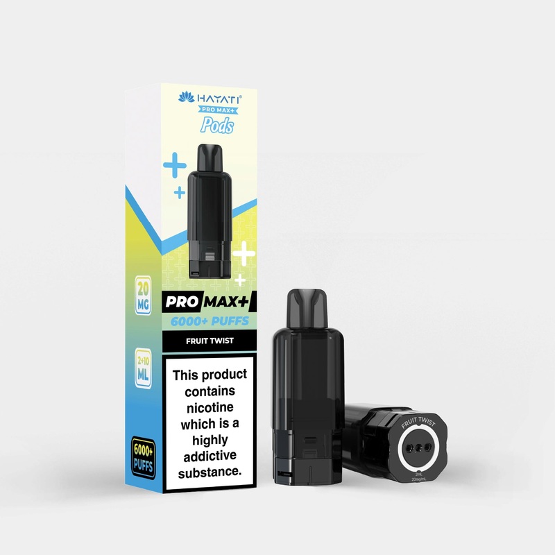 Hayati Pro Max+ Pods Find Your Flavour Fix! Got a Hayati Pro Max+ device? Perfect. Explore 30 bold flavours and enjoy smooth, flavour-packed clouds with every puff. Fruit Twist A rainbow medley of tropical fruits delivering sweet and tangy notes in every d