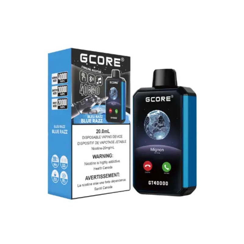 The GCore GT 40k Disposable Vape has features like no other: with bluetooth connectivity you can play music, games, receive call and text notifications, along with a touch screen display. GCore GT 40k Disposable Vape Flavours: Blue Razz Double Mint Frozen