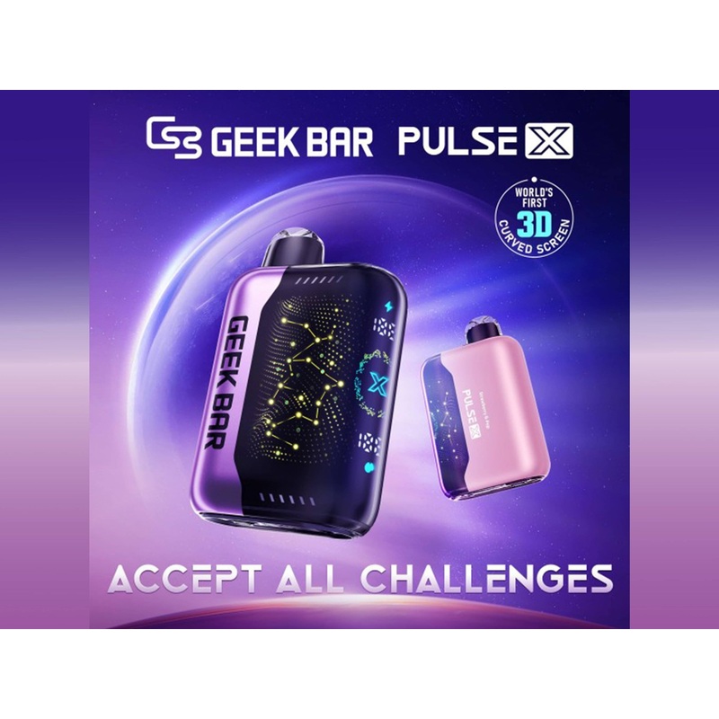 Discover the GEEK BAR PULSE X DISPOSABLE, a game-changing vape with a massive 20ML e-liquid capacity, delivering up to 25,000 puffs in regular mode and up to 15,000 puffs with Pulse Mode activated for an intense flavour and hit! This visually stunning device features the world’s first 3D curved screen and vibrant LED lighting, displaying e-liquid and battery charge levels for ultimate convenience.