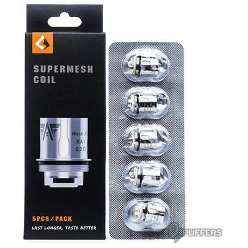 Geekvape Super Mesh Coils Here comes the GeekVape Super Mesh Coil designed for Shield tank, Aero tank, Aero Mesh, and Cerberus tank. Mesh coils are designed to ensure a great vaping experience. Parameters Resistance: Super Mesh X1 Coil 0.2 Ohm 60-70W Resis