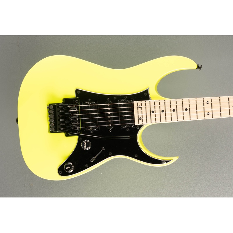 Desert Sun Yellow, Made in Japan, Basswood body, Super Wizard shaped 5 piece Maple/Walnut neck, 17 radius Maple fingerboard with the dot inlays and jumbo frets, 25.5 scale length, 1 11/16th nut width, V8 humbucking bridge/S1 single coil middle/V7 humbuckin