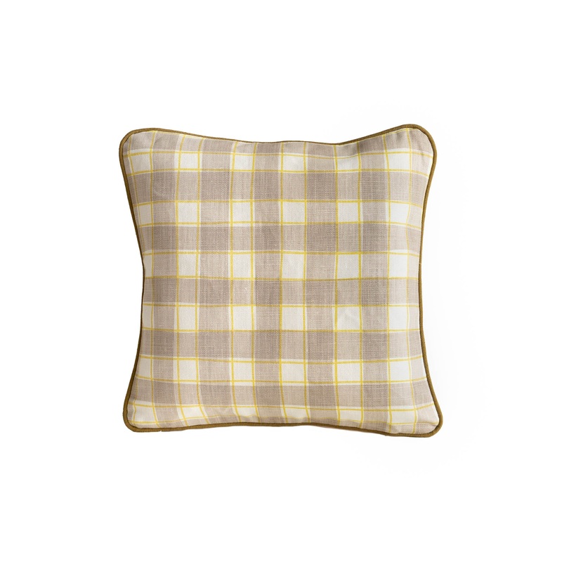 Gingham Taupe Cushion Cover – Harvest Piping – 40x40cm